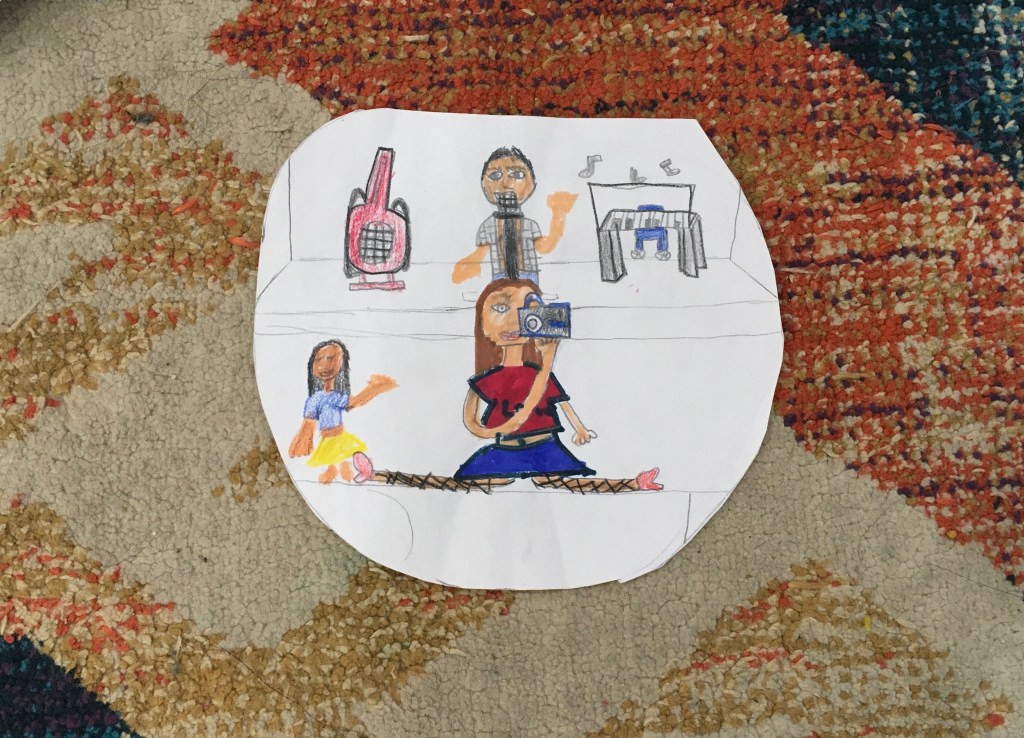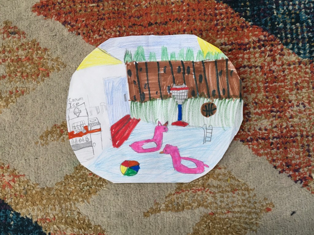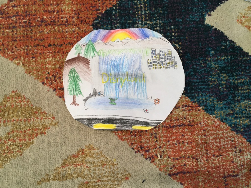 The night before the drawing show.There was a girl walking in the forest.Then she went to a party and took a picture of herself.After she came back she watched the sunset and ate her dinner.The next morning she woke up and went for breakfast and ate ice cream. after breakfast she went in a pool Then she went for holiday to Disneyland